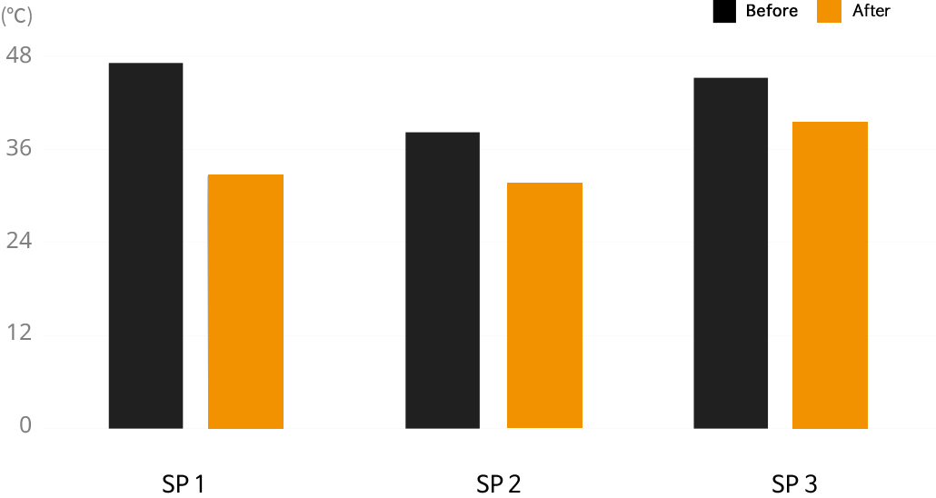 | 테스트 전(℃) | 테스트 후(℃) | |